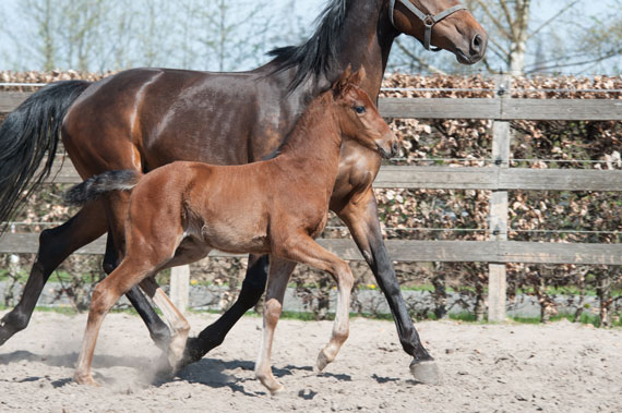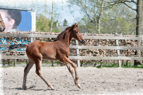 Kathyn is een mooi merrieveulen dat over zeer veel bloed beschikt. Alhoewel ze bij de geboorte niet al te groot was, groeit ze inmiddels al flink. Ze kan super goed galopperen en ook nog eens heel goed draven.